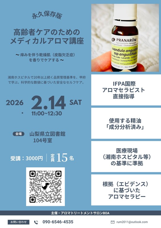 心や体の不調・機能改善するメディカルアロマセラピーを目的としております。